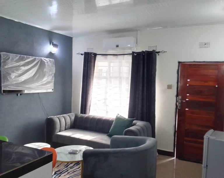 Experience comfort and serenity in our fully furnished one bedroom apartments, perfect for both relaxation and productivity during your stay in Mansa. Our spacious studio suite offers modern amenities, ensuring a comfortable stay with high-speed internet, air conditioning, and round-the-clock security for your peace of mind.